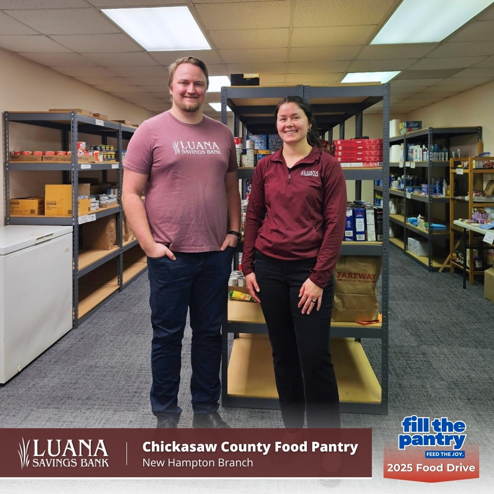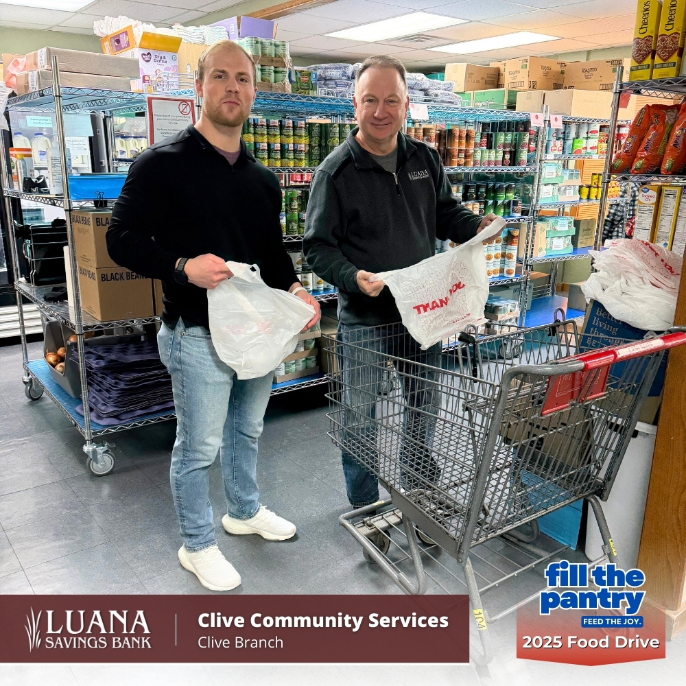 Luana Savings Bank would like to thank the customers, staff, and community members that participated in the “Fill the Pantry” food drives. Please visit Luana Savings Bank’s Facebook page for future service efforts as they continue to work and provide support in the areas they serve.