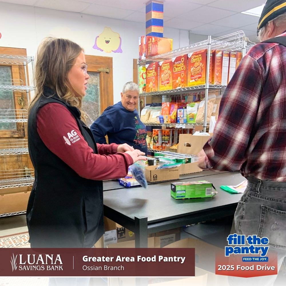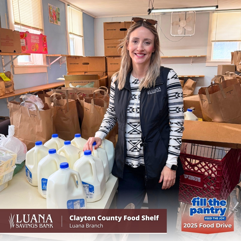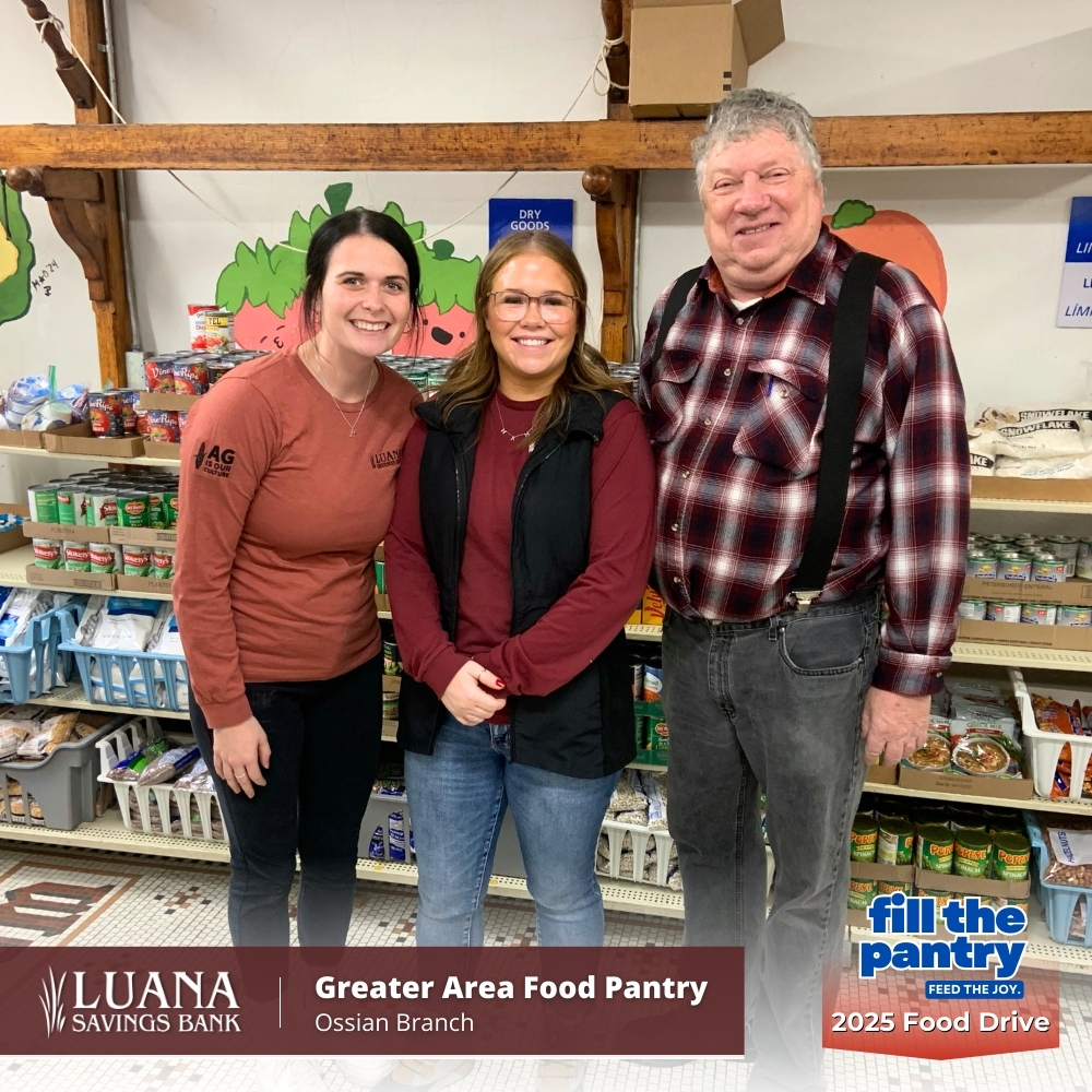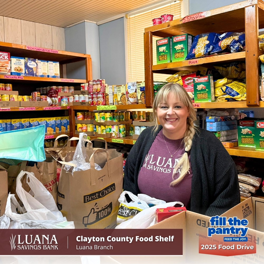 “We’re grateful for the incredible work our local food pantry partners do year-round,” said Allanda Gehling, CRA Director for Luana Savings Bank. “Our goal is to stand beside them, supporting their mission and amplifying their efforts through donations and volunteer services, especially during the holiday season.”