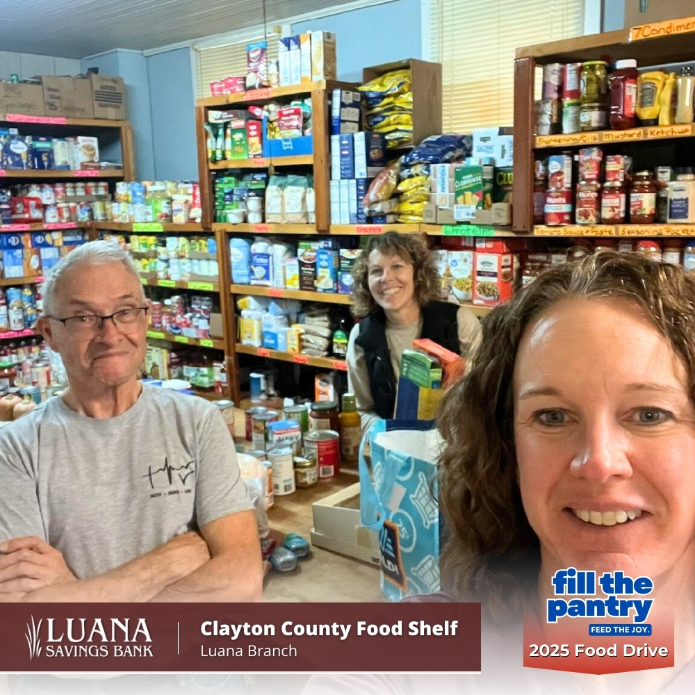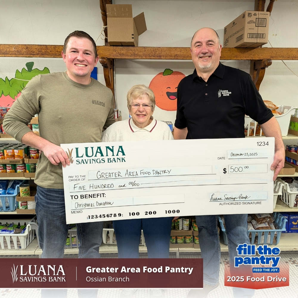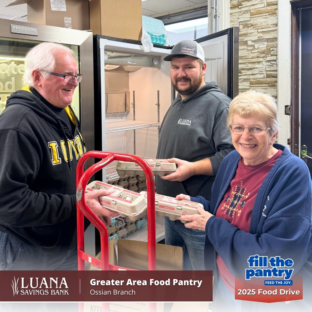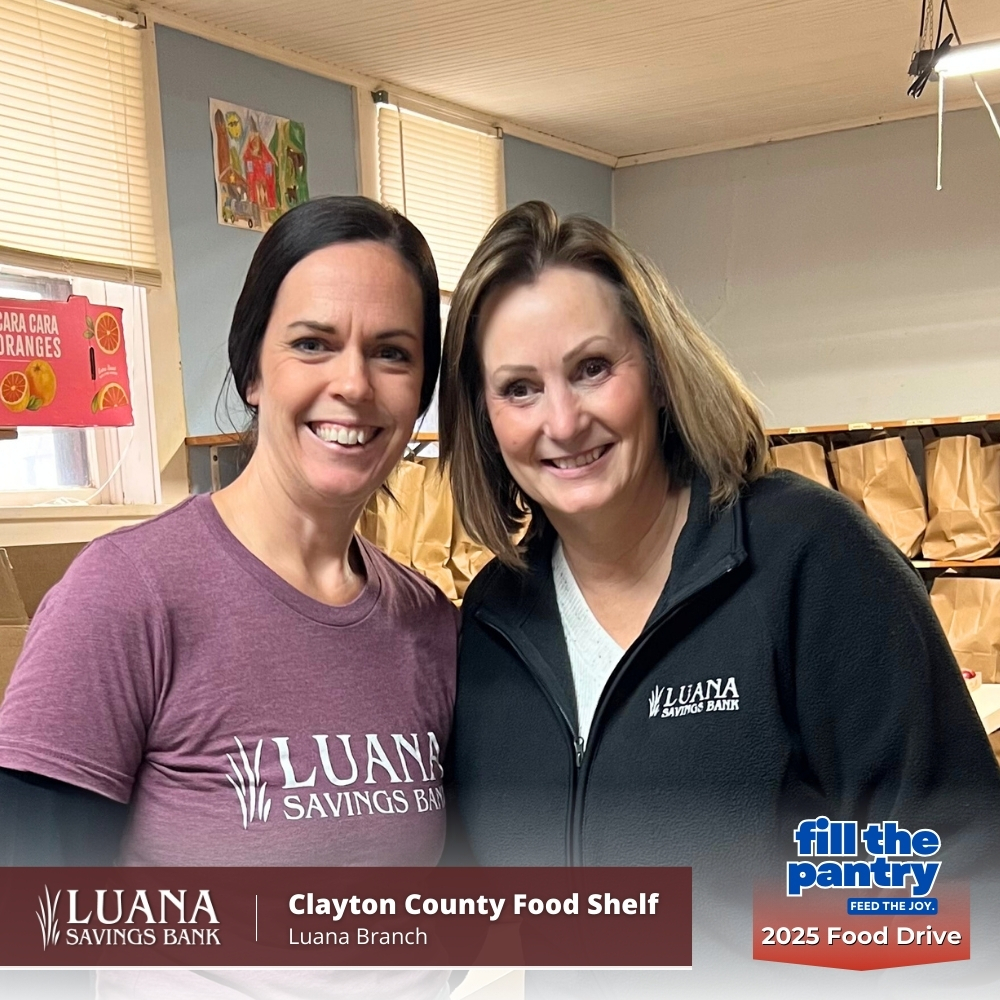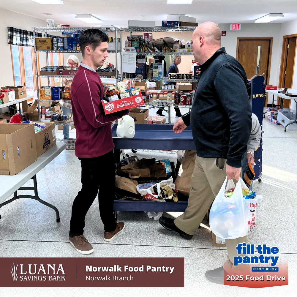 “We’re grateful for the incredible work our local food pantry partners do year-round,” said Allanda Gehling, CRA Director for Luana Savings Bank. “Our goal is to stand beside them, supporting their mission and amplifying their efforts through donations and volunteer services, especially during the holiday season.”